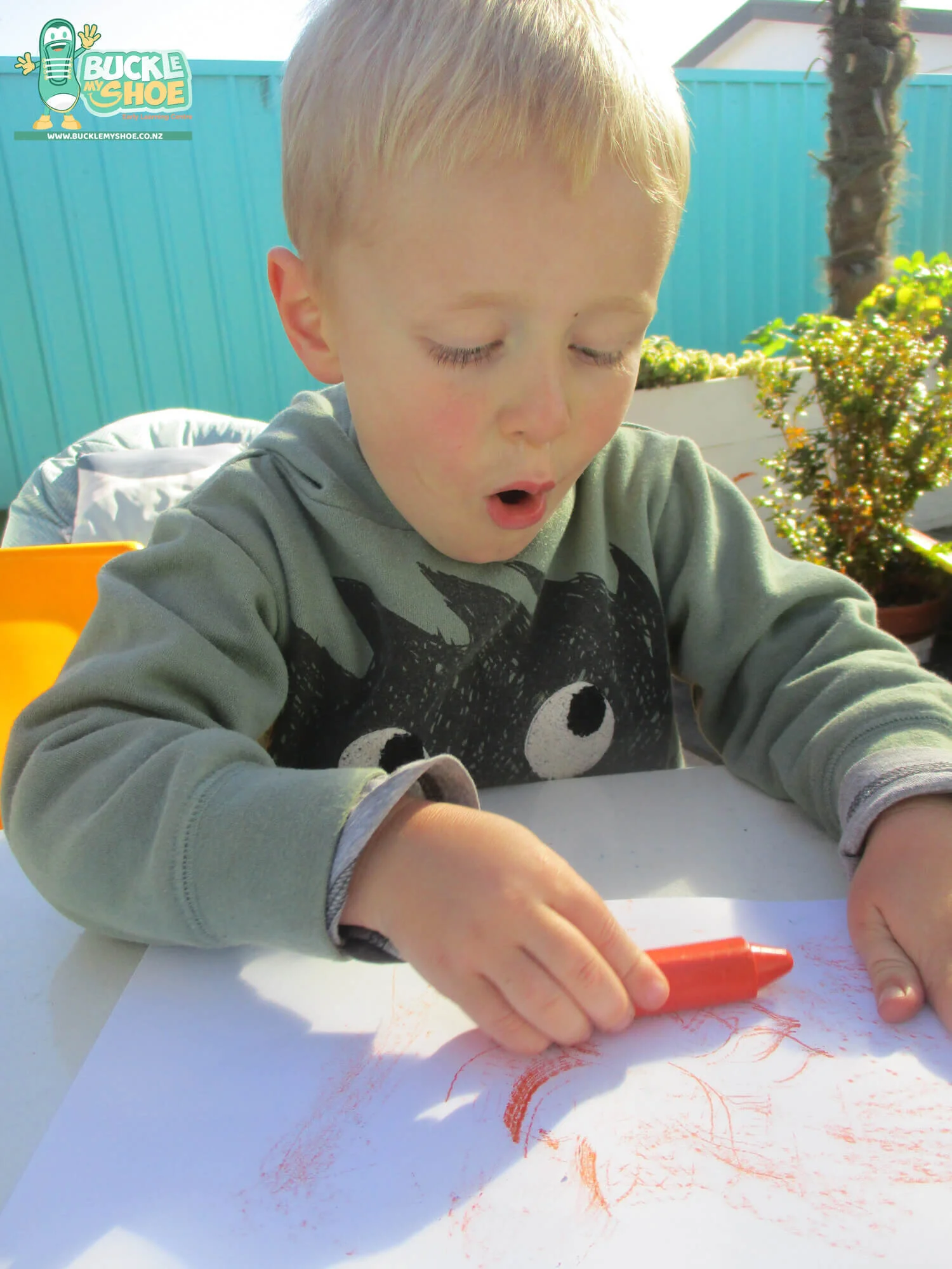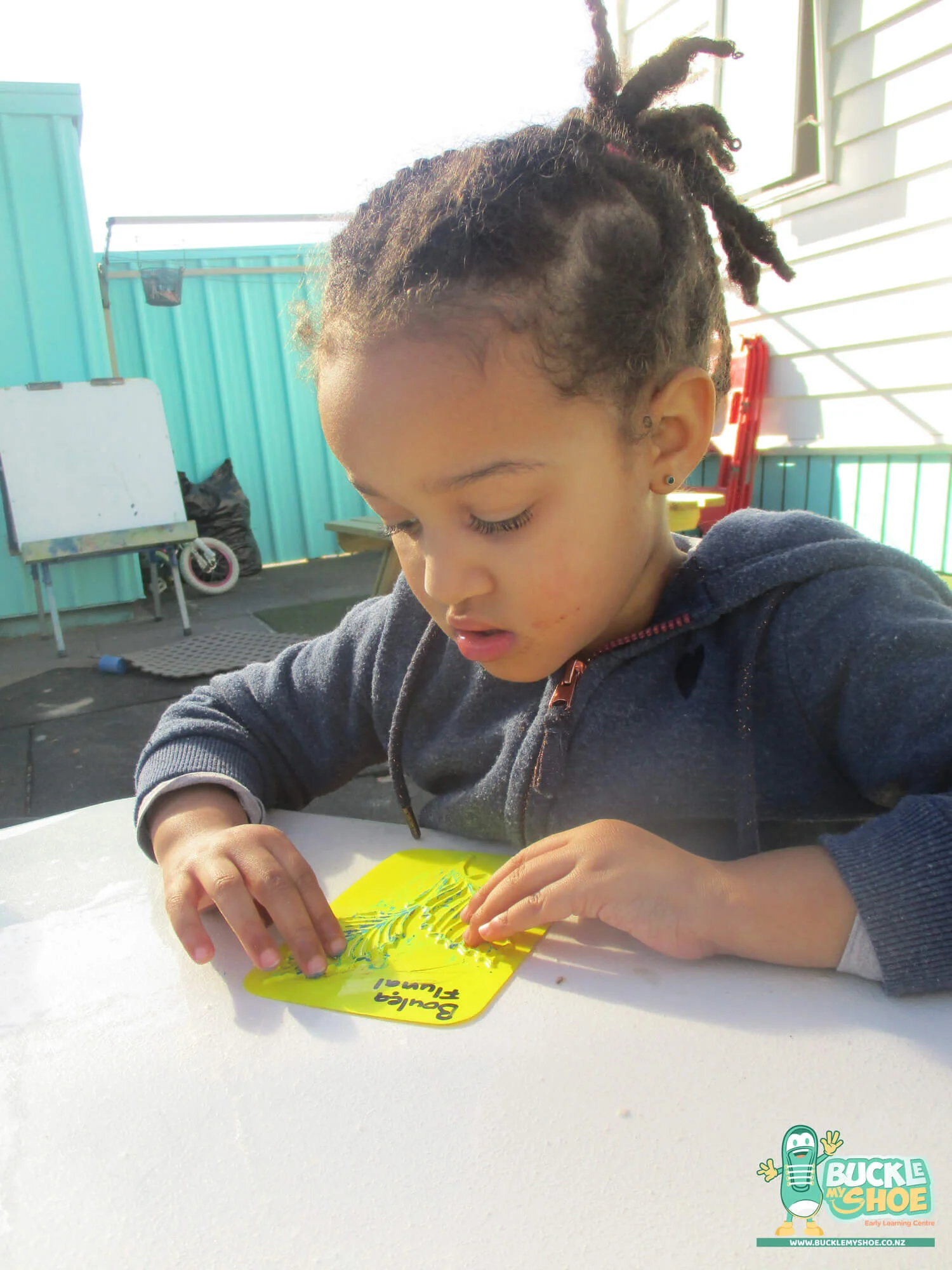 This was a process that many of our little ones have not done before, so with some role modelling, they were able to see what to do. Placing the leaf stencil under their piece of paper, they used a crayon on its side to rub against the paper, exposing the leaf print.