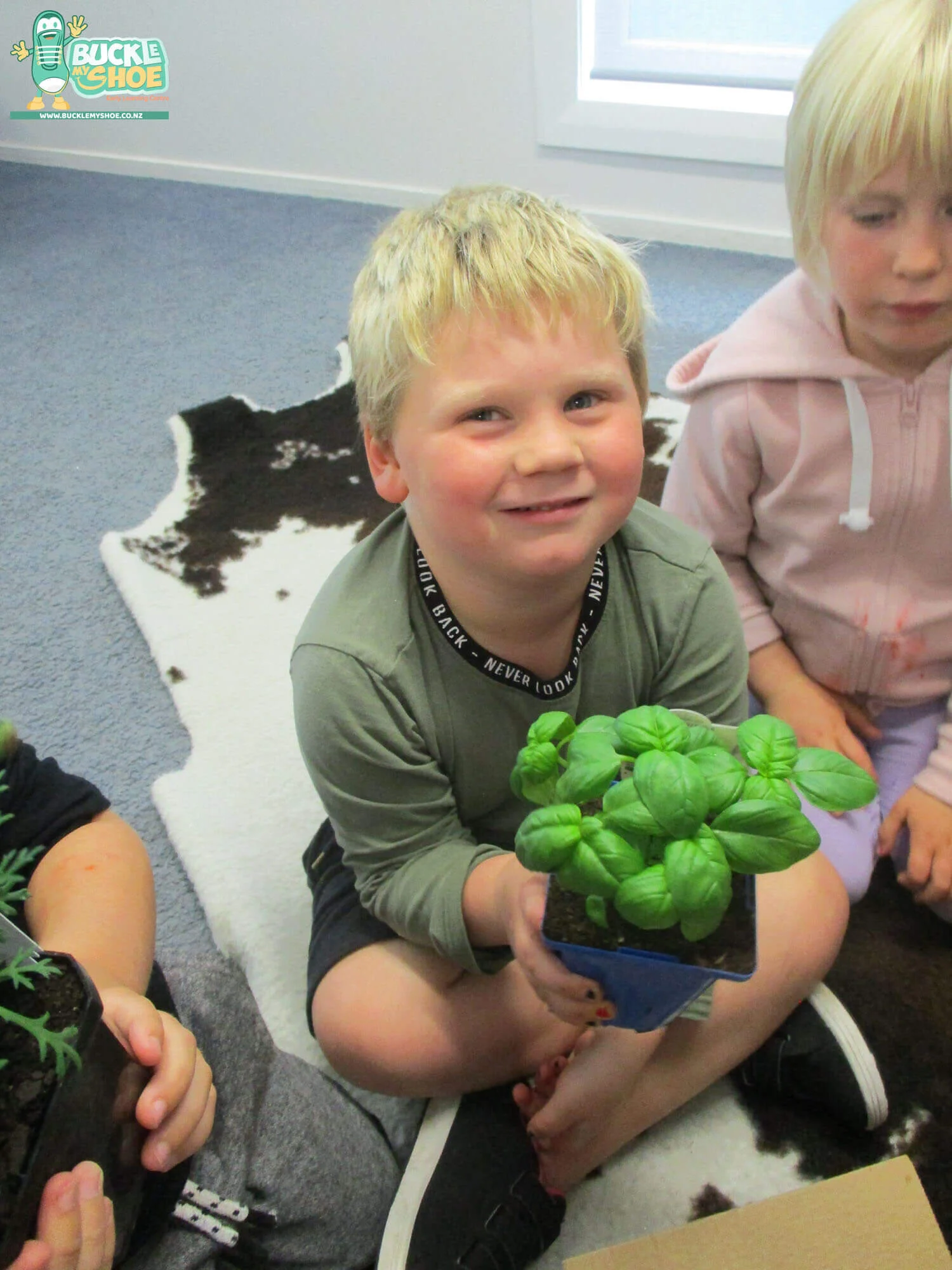 Our tamariki crowded around the boxes and took turns smelling and touching each plant. “This smells like pizza”, one child said, as he smelt the basil plant whilst another spent time feeling a plant that was very soft and furry. “This one is called lamb’s ear”, one of our passionate gardeners shared and this drew everyone’s attention! Off to the garden we went, with spades and our plants – ready to give them a new home!