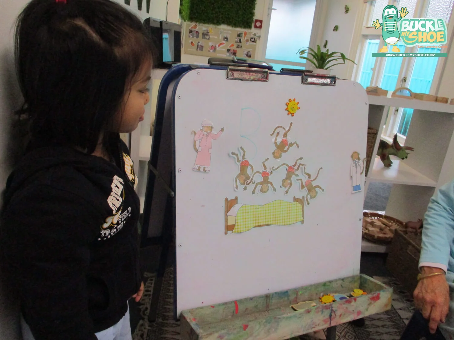 Kathryn read a special story called “Shhh! I’m sleeping” whilst everyone huddled together and listened in. Then it was time to act out one of our favourite rhymes – 5 Little Monkeys Jumping on the Bed.
