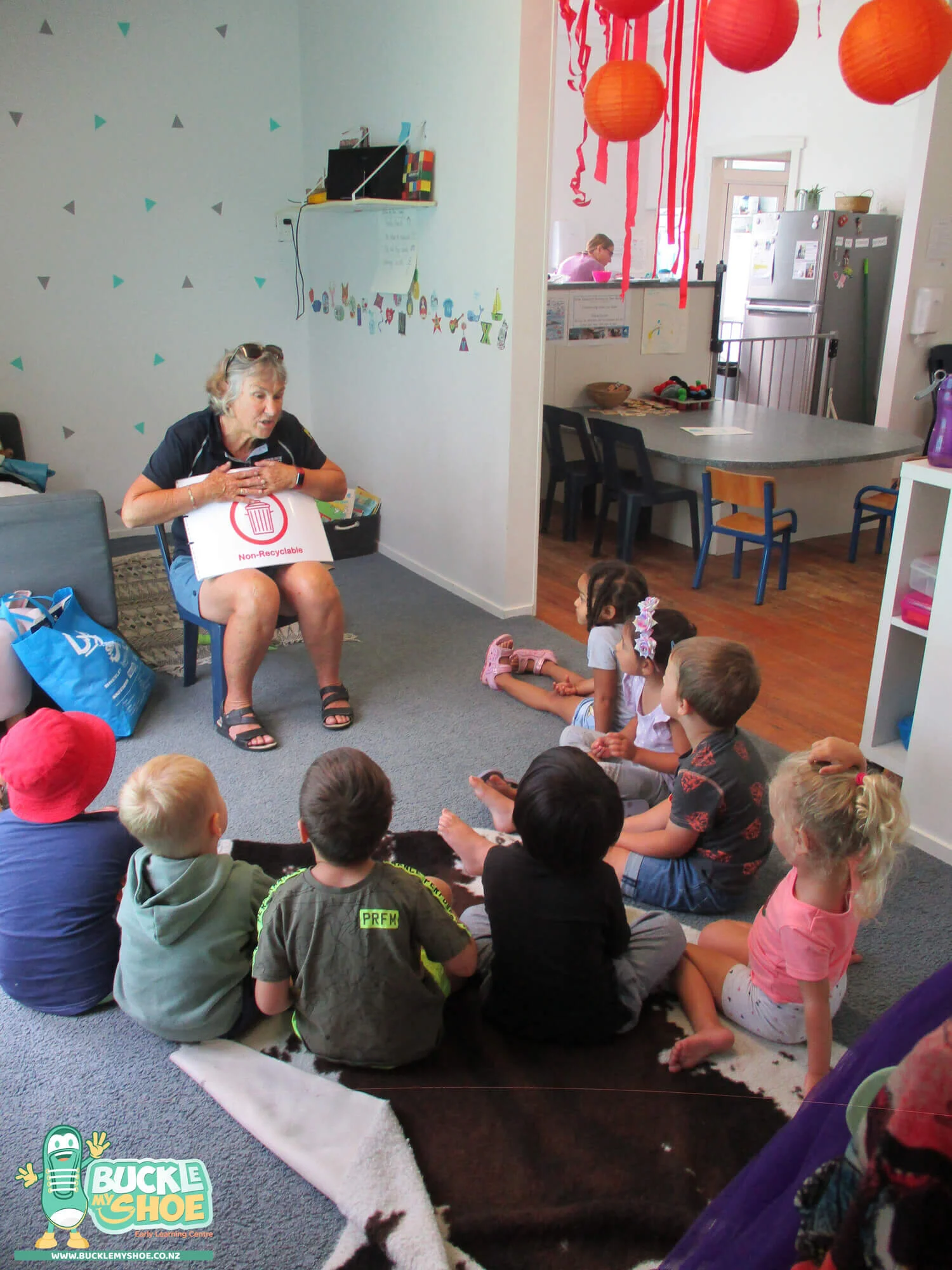 To further support our tamariki's emergent learning on being kaitiaki/caretakers of the sea, a lovely lady from the Tauranga City Council came to speak with us about recycling rubbish and caring for our waterways and the sea. She is part of the Resource Wise schools program, which is a great program that we at Buckle My Shoe are part of and have achieved a silver ranking in.