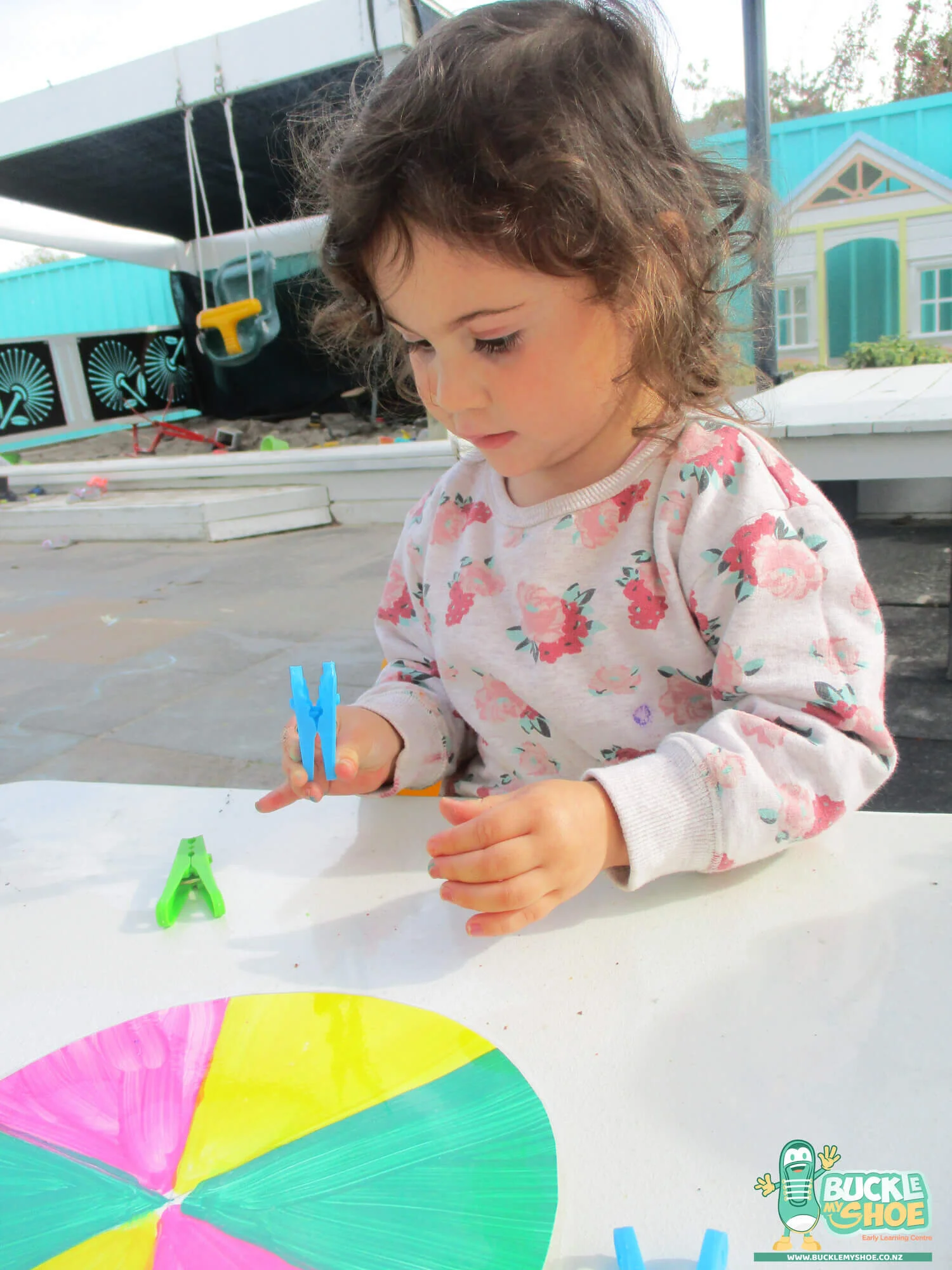 Recently one of our wonderful teachers created a resource to extend on our little ones’ fine motor skills and colour recognition. Round colour wheels were offered on the table alongside some pegs and as soon as our tamariki saw this, they were spread out around the table. Using the strategy of role modelling, one of our kaiako demonstrated how to pinch the peg and attach it to the corresponding colour on the wheel.